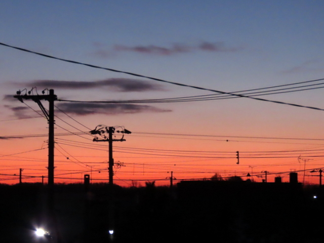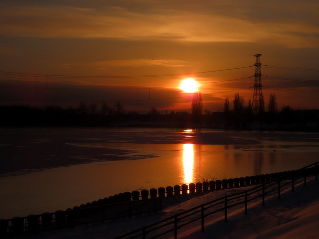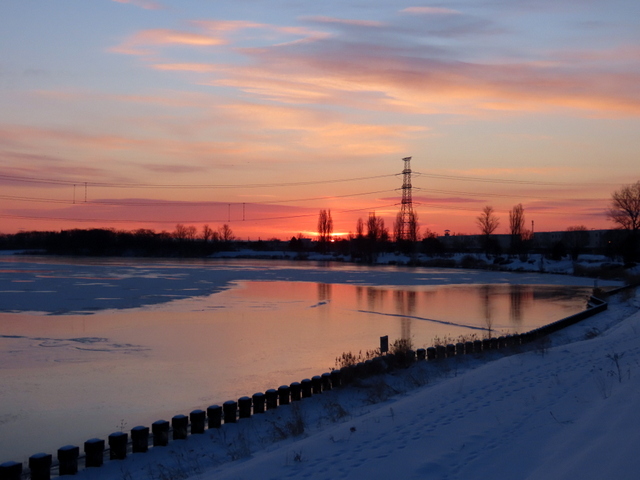 7:451月7日,石狩ではこの冬一番の冷え込み(-13.8℃)。寒いけど期待通りの青空(6:25の朝焼け)。日出時刻は7:06。年初から愚劣極まりない出来事に鬱状態だったけれど,今年の「初」日の出を拝むべく本町へと走る。しかし北へ向かうほど空は暗くなる。Uターンして図書館裏の茨戸川河畔へ。どうにか朝陽は昇ってくれた。川面には光の道。