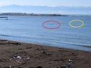 なお今年の場合,2基の離岸堤の延長線までは堆砂が伸びていないので,離岸堤の裏側を見ることはできない。