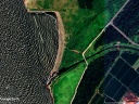 汀線(岸)が最も後退した2024年と,その後大きく前進した2025年とを比較するための Google による裁量なのかもしれない。上の画像をクリックして拡大するまでもなく,サムネイルの小画面でも堆砂により膨らんだ部分が茶色く如実である。