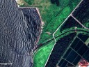 (E) ここに,イメージオーバーレイ機能を用いて先のC図の画像ファイルからイメージを上乗せする。最初はとんでもない位置に,とんでもない大きさ,角度で乗っかることなるかもしれない。イメージオーバーレイ機能には,上乗せした画像を,移動/縮小拡大/回転する機能が備わっているので,それらを用いて,道路,川,海岸線,工作物など整合性に納得がいくまで操作する。