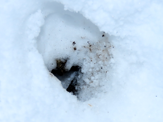 おっと,今年はウマ年。ネズミ年ではありませんけど,まぁ,メデタイ。出入りのたびに穴が大きくなり,雪の穴の下にブロックの穴も見えてきました。