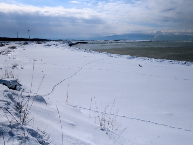 関係なく今日こそは浜歩き日和。南東の微風ながら,しかし最低気温は-14.6℃。歩いている最中もずっと-9~-7℃。寒かった。