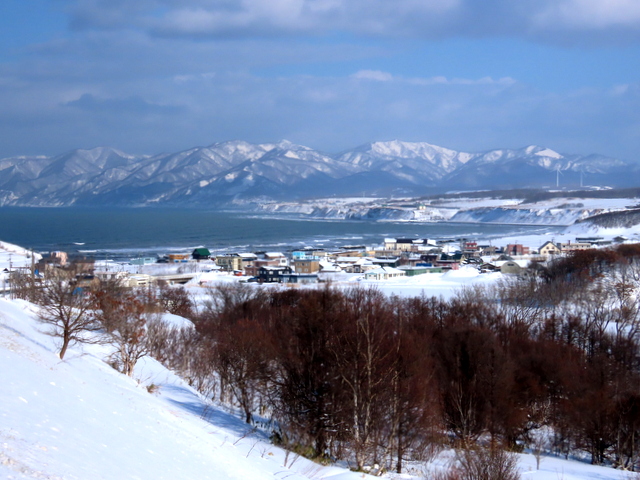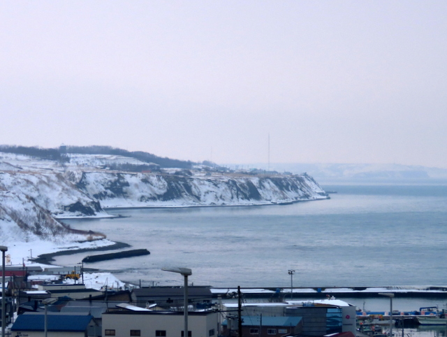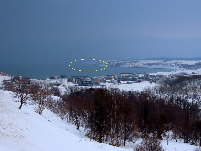 (b) は,青島,小谷方向を,厚田道の駅3階展望デッキから眺めました。もっと近くの別狩からの眺めはこちら。いずれにしても1/28の初群来と位置的にはほとんど変わらず,規模は若干小さいものでした。