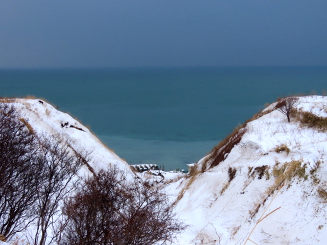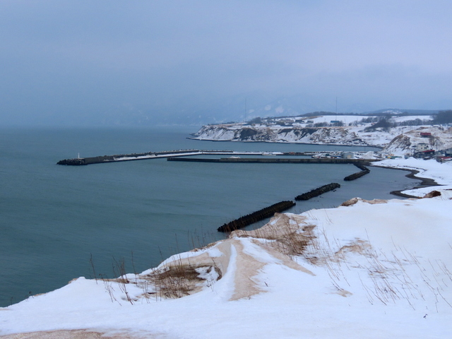いつもながらの望来VP(ビューポイント)から眺める。白っぽい。けど,確信はもてず。雪山から降りるとき滑ってコケる。