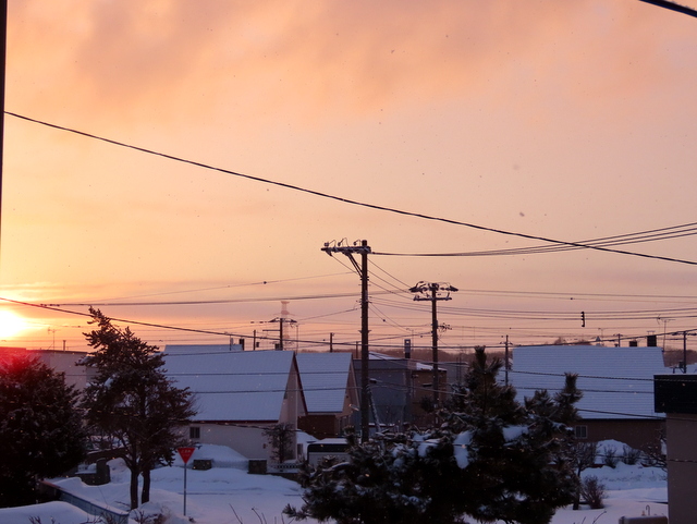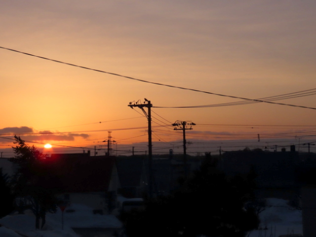 e (12:39)(a,b,c) まず今朝(1/20)のこと。1/7は茨戸川にに走ったため,自分ちからの今年初めてのくっきりとした朝陽。