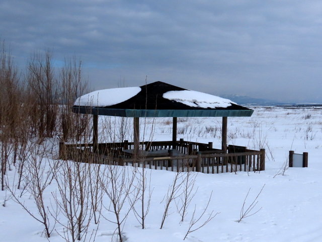 はまなすの丘のちょうど中ほどにひと休み用?のあずまやがあるが,最近6年の2月中ほどのあずまや風景を並べてみた。眺める角度がそれぞれで微妙に違うことを考慮に入れても,わーーーおっ!積雪が年ごとに減っているっ!と思ってしまうかもしれない。