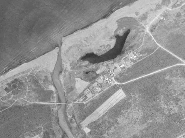 下に引用した北海道建設新聞 2016.03.24 の記事,あるいは北海道新聞 2016.04.07 小樽・後志版の記事によると,木製部分は 1985年に崩落したとされる。しかしこの空中写真ではそのような徴候はまったく見られない。
