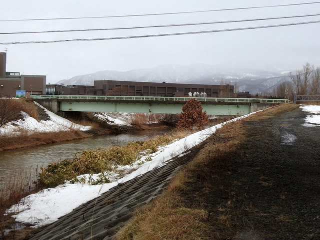 3月はバッタ塚橋からまだ雪残る濁川左岸堤防を歩く。