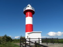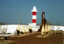 塗り直し 〜 赤縞は4本から2本へ (秋,石狩灯台百年を記念して。歌碑も建立) |