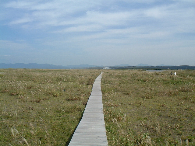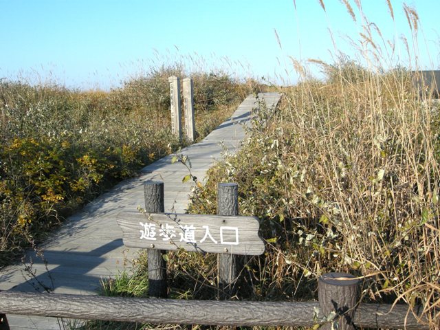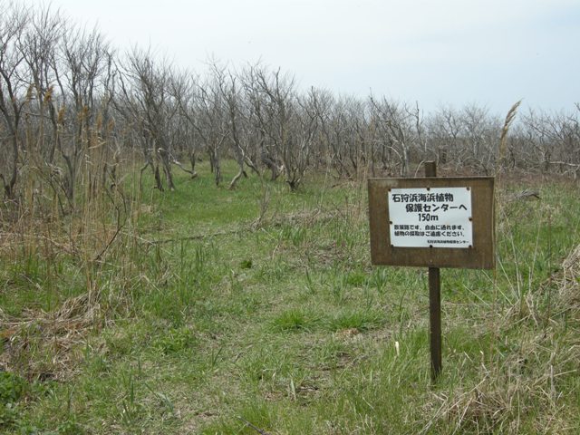 [追記] ニセアカシアとかカモガヤなどの外来植物は,ススキなどとともに「はまなすの丘公園」の海浜植物群落に侵入して景観を損なう招かれざる客。石狩浜海浜植物保護センターでは,毎年これらの除去作業を行っているという。 |