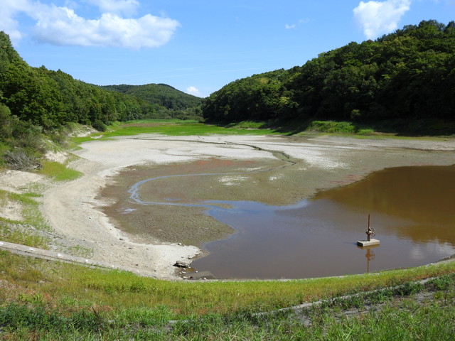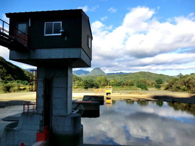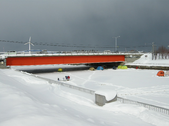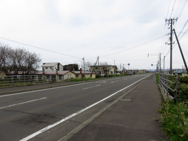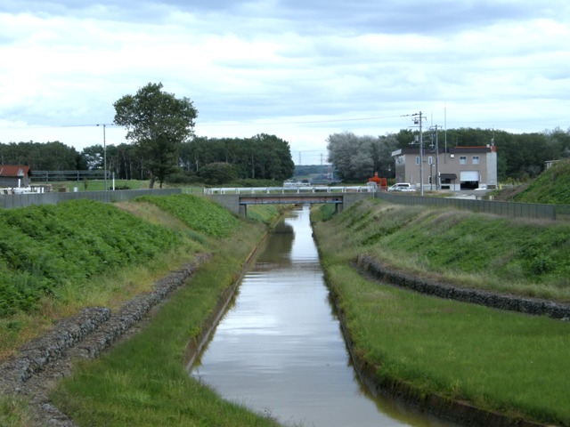 親船町にある本町中継ポンプ場のすぐ北。道道225号小樽石狩線だから,いしかり浜に向かう時にはほとんど必ず通る道(石狩樽川海岸線を通らなければ)。これまで何十回,何百回と走っているはずなのに,ここに橋があることを意識したことはなかった。確かに下にはほそぼそと水の流れがある。橋といってもせいぜい長さ15mくらい。橋から250mほど東に流れて石狩川に合流する。手前に赤井川樋門が設けられている。ということは,このほとんど排水路に近い川は”赤井川”という立派な名前の川なのか…
