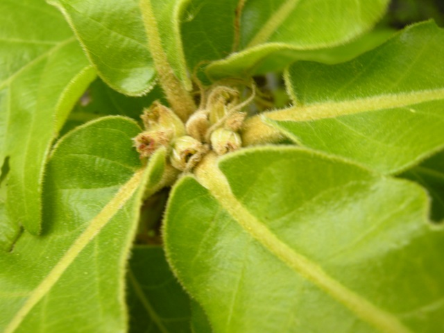 [追記3] 2015.06.13 このドクガたち,なんでも食ってしまうみたいだ。好物のハマナスを食い尽くすと近くにある葉っぱならお構いなし。。。アキグミにもこの通り。ほかに,ヤマブドウ,イタチハギなどなど。