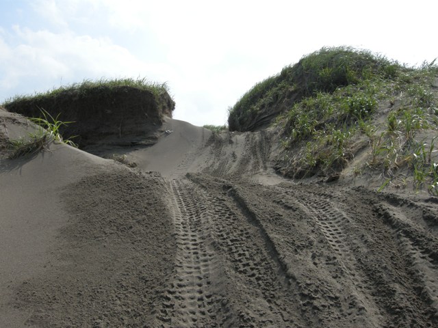 また海側の単管柵が一部引き倒されていたこともある(2014.05.17)。