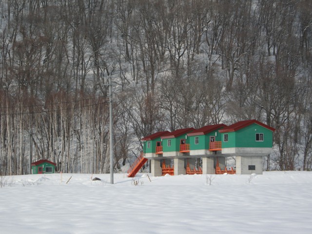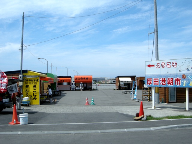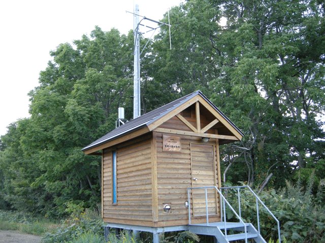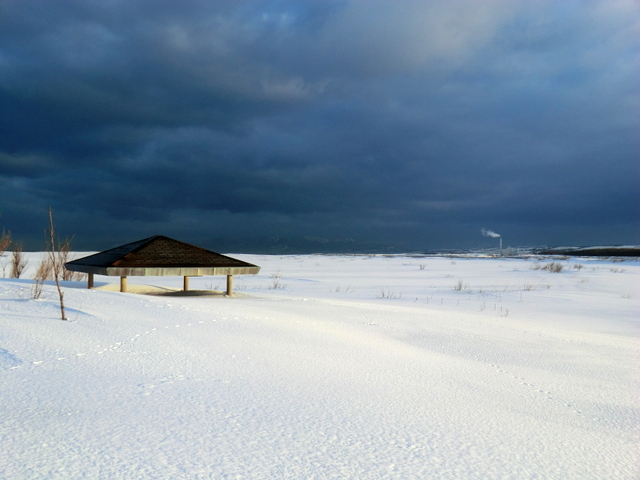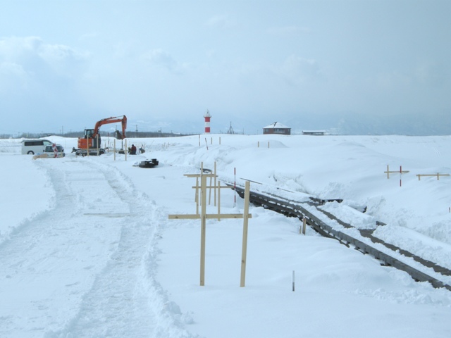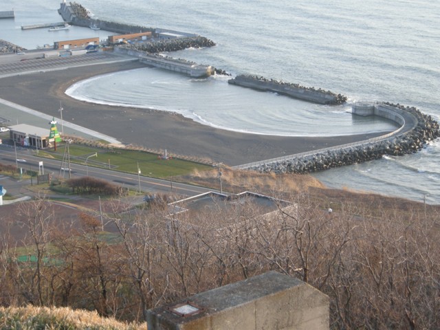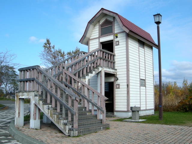 八幡町から望来へと続く海沿いの道,知津狩川を渡った先に建つ。石狩浜からも遠望することもできる大きな施設である。