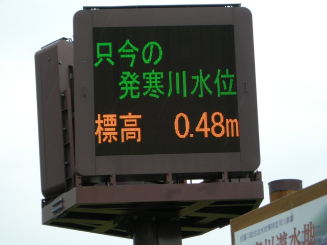 [追記5] 2016.12.08 右岸側の渡船場跡,従来からの標識から300mほど上流の河川敷に新しい案内板が立てられていることに初めて気づいた。添えられた写真は異なるが,案内文面はまったく同一。去年の8月,左岸の案内板と同時に立てられたものと思われる。この存在にどれだけの人が気づいてくれただろうか・・・