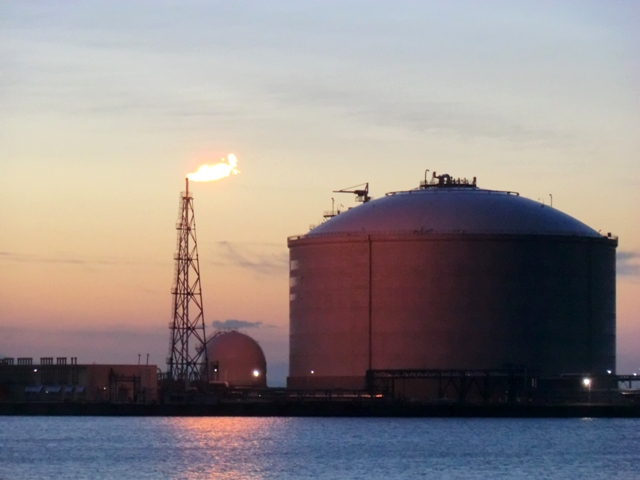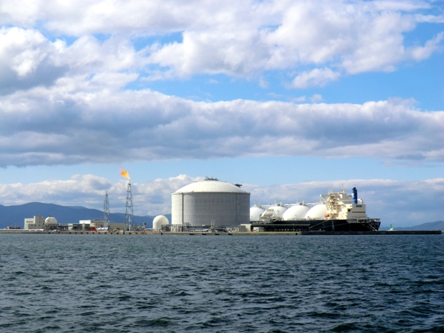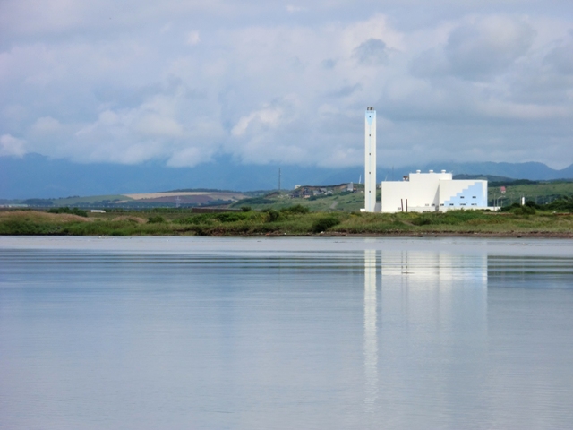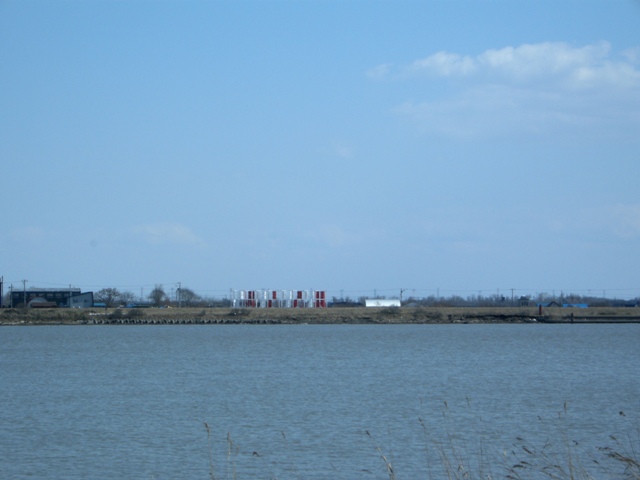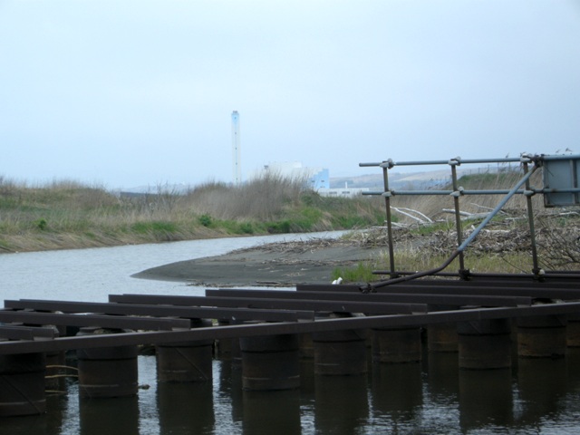 川と海の出会う場所からの北石狩衛生センター。