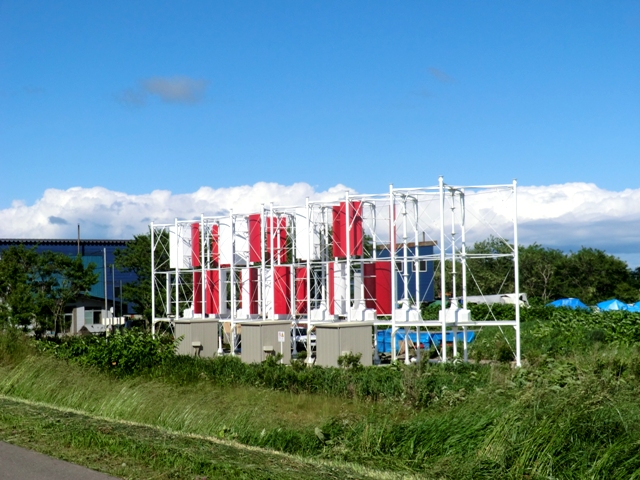 石狩湾新港・石狩放水路脇の市民風車・かぜるちゃん。