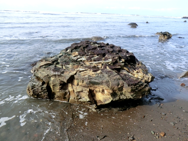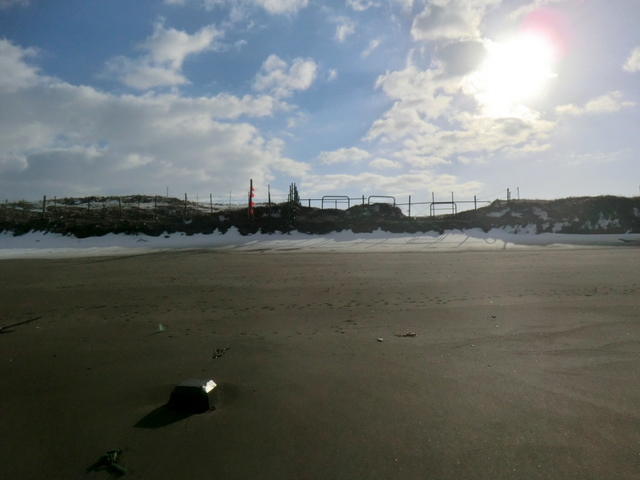 ブロックは海際の数個の頭が露出している程度(2013.12.18,2014.12.19)で,ほとんどは砂の下に隠れている(2013.11.24,2015.01.14)。