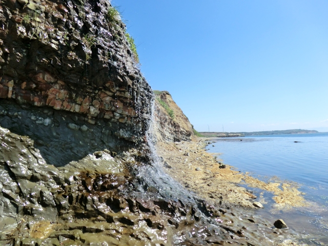 嶺泊海岸に落ちる名も知らぬ滝。