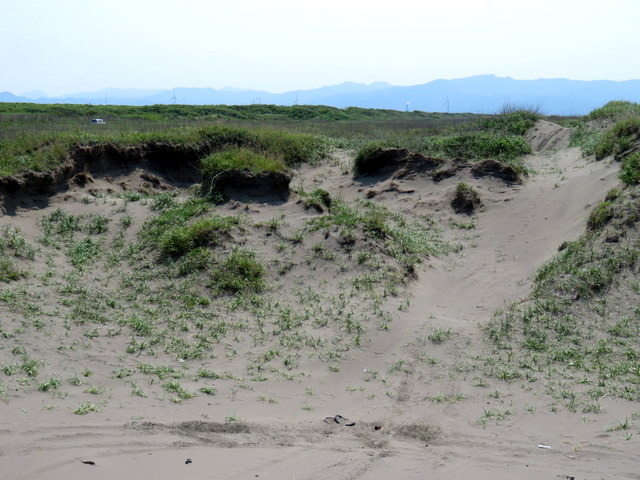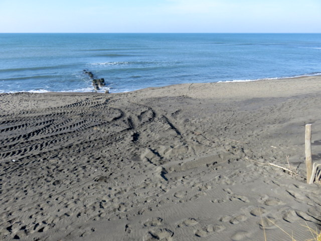 [追記4] 2015.07.16 完全に砂に埋もれて見えなくなったブロックも多数。それだけ砂浜がもり上がったということだが,そのわりに砂浜の幅はさほど広がらず。