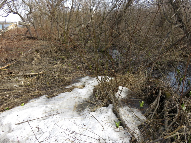 [追記2] 2015.04.25 石狩川の雪解け水が運んできたガス(枯葉,木屑,ゴミなど)がここまで押し寄せてきている。