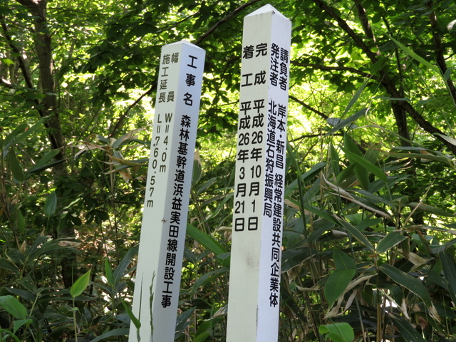 2007-2008年度,(社)北海道治山林道協会が実施した”北海道民有林治山林道100選”において,選考された林道部門40点の中でも『銀賞』を受賞(2009年)したことの証し。ちなみに40点の中には石狩市ではほかに”広域基幹林道古潭越線”も選ばれている。