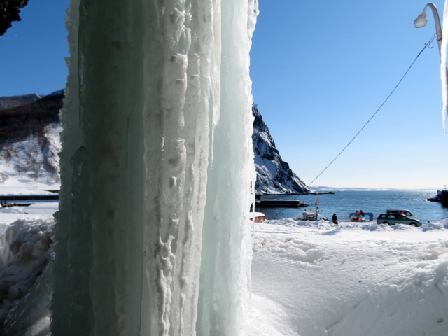 濃昼漁港脇の巨大ツララ(2016.02.04)