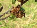 ドクガは孵化して幼虫の状態で越冬,4月ころ暖かくなると集団で動き始める。はまなすの丘では大好物のハマナスが新葉を展開すると数十匹がダンゴ状に密着して,まるで黒い花が咲いたのかと目を疑うほど。