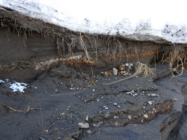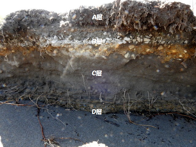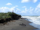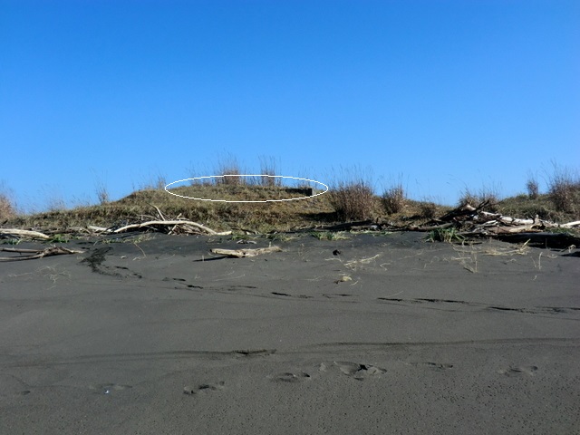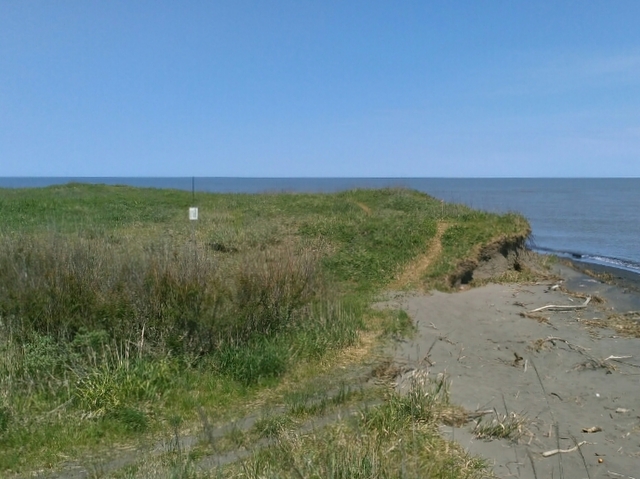 2008年から継続して浜崖を観察し続けてきて,浜崖とは浸食されて後退するもの,と認識してきたが,このまま推移すれば浜崖が前進する予兆なのかもしれない。甘い,かな?