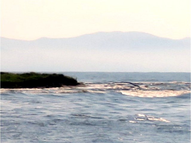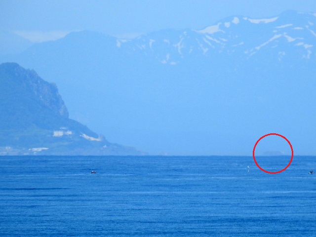 島があると思われるあたりの浅瀬では波が砕けて白く泡立っているが島を視認することは無理だった。