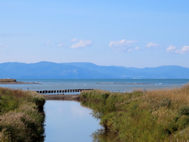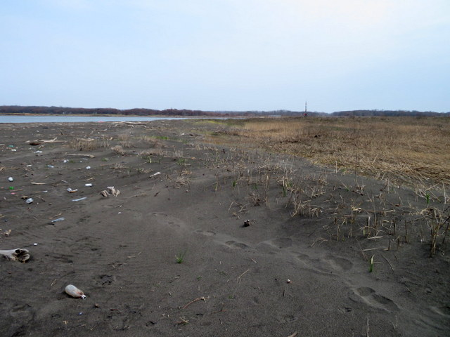 島は短くなったようだが本土に繋がっているではないか。左岸へ引き返し砂嘴を歩く。
