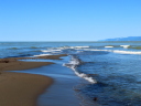 汀線ラインは通常平坦ではなく凹凸を繰り返している。いま注目するのはその凹部。凹部では強い離岸流が発生していると思われる。