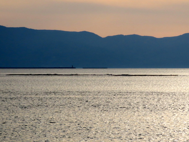2022.10.16 べた凪。砂嘴先端から沖合の島をはっきりと確認。二つの島はやや離れているようだ。