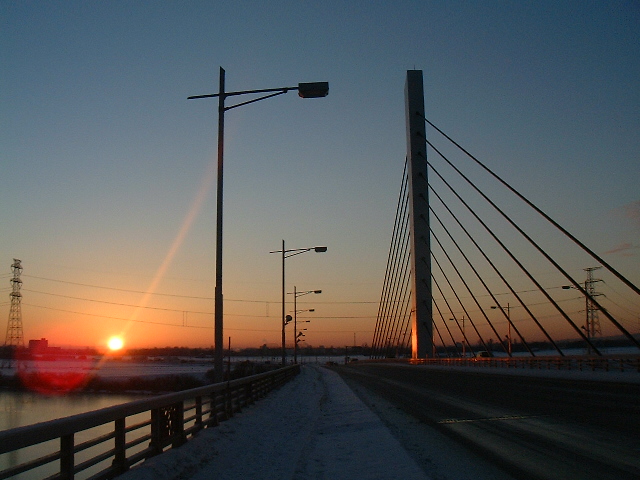 2007.12.22 『「花畔」にこだわる旅』のページを花畔大橋でとりあえず終結させるに当たって,朝陽を受ける大橋の写真が無性に欲しくなった。