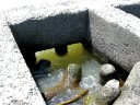 この導流堤は下部が開いていて海水が透過する構造になっている。