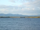 2016.08.24 思いきりズームアップして導流堤先端を撮る。背後の岬は実は愛冠岬。雄冬岬はその後ろ。