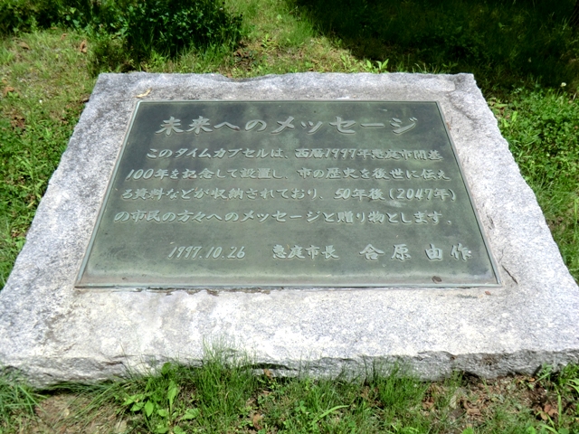 公園の西側には恵庭市郷土資料館も隣接。タイムカプセルも設置されている。
