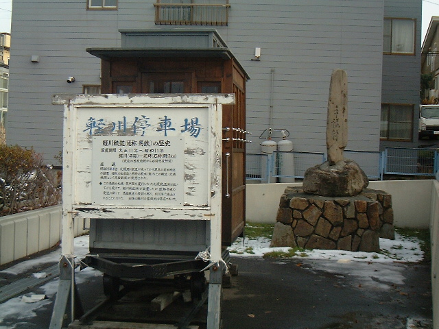 手稲コミュニティセンター敷地内。かつての馬鉄・軽石軌道の客車などが陳列されている一隅にある。