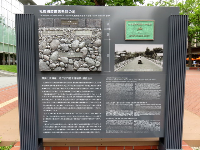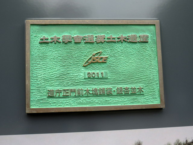 「舗装道路発祥の地」ということで,木塊舗装(*),銀杏並木(*)と合わせて土木学会選奨土木遺産に選定されているとのことだ。