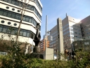 アンダーパス工事に伴って,大友亀太郎の銅像も創成川のほとりからこの敷地内に一時避難中。