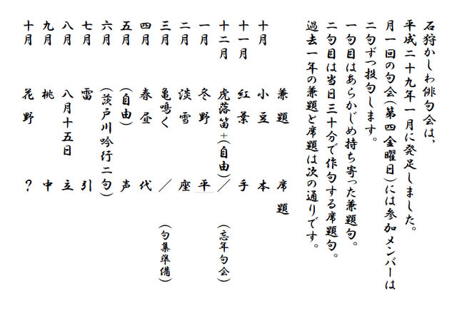石狩かしわ俳句会では去年に続き今年も13名のメンバーが俳句の自筆短冊を出品しました(a)。