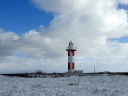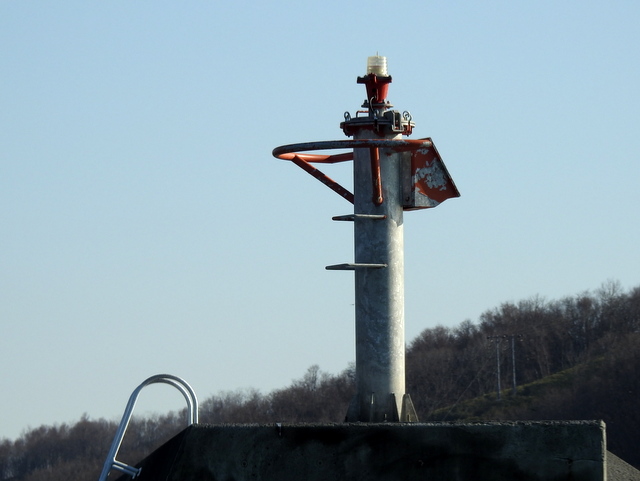 でもこんなのぶら下げていたら首が折れちまうかもしれない。どうやら漁網につける焼き物の重石のようだ。秋以降砂嘴先端の浸食が際立つ。12,13日にかけてもこの冬一番と思われる大時化(有義波高4m越え)だった。