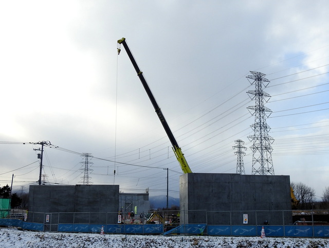 工事中の橋脚紅葉橋を渡って石狩市から札幌市の市域に入るとすぐに目に入るのが巨大な橋台,橋脚工事。