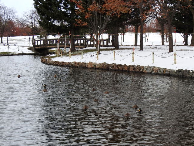 昨日(11/24)の石狩の最高気温は17℃。池面の氷もかなり解けて,22日にはいなかったカモたちがちゃっかり帰ってきていた。そのあと気まぐれに市民図書館に向かう。消防車,救急車,郵便車,レッカー車,パトカーなどが集結。