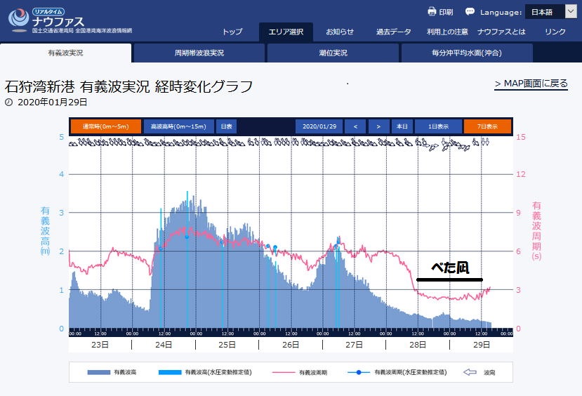 左のNOWPHAS画像で分かるように昨日の昼から今日の昼にかけて24時間べた凪。群来日和。ほっとくわけにはいかない。
