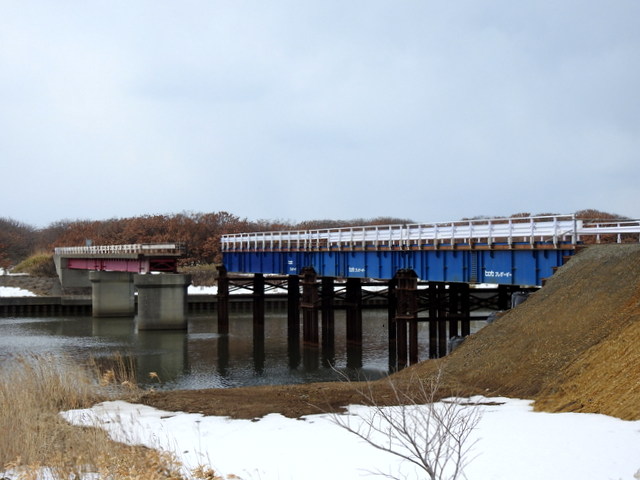 (a) オタルナイ橋解体工事はすっかり片付けられて休工中。右岸河川敷に残されていた橋脚も失われて悲しい。
