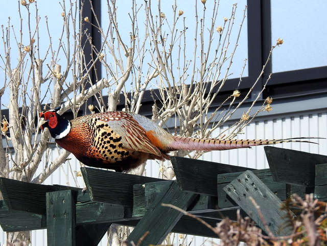 残った1羽はパーゴラの上に飛び移りしばらくの間勝ち誇ったようにケーンケーンと威嚇し続けたのだった。