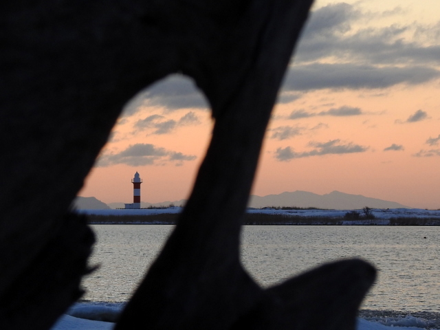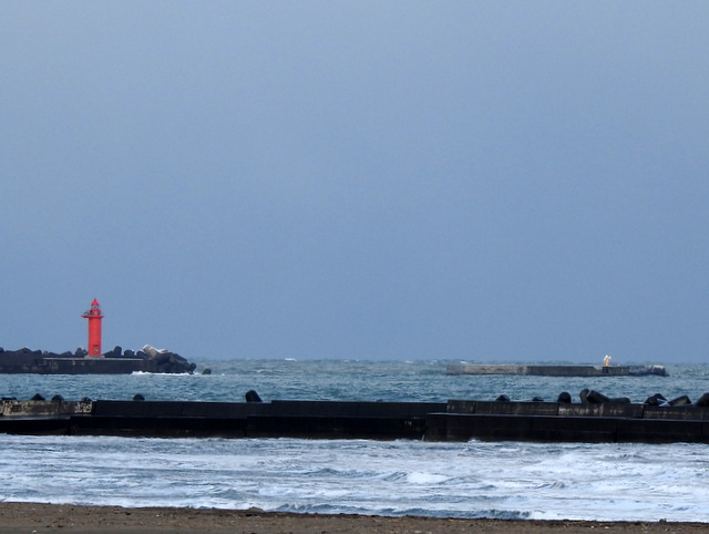 昨日 (3/18)浜益漁港防波堤に立つ灯塔の写真です。左舷(白)灯台は入っていません。微妙に角度が違いますが,大体同じような写真です。