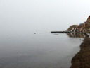 北防波堤の先の,去年はトドの憩いの場だった島堤。