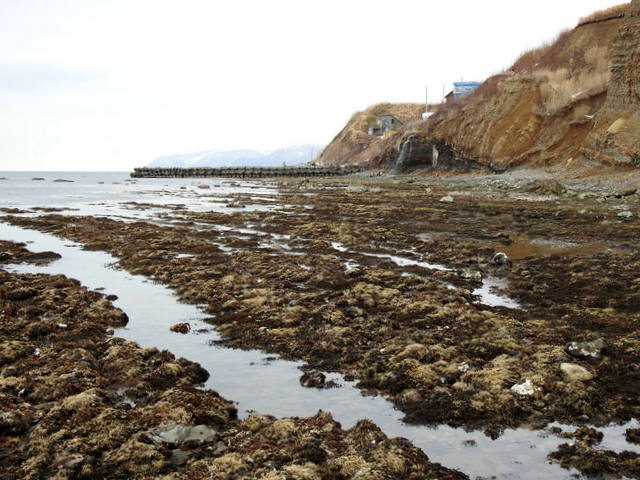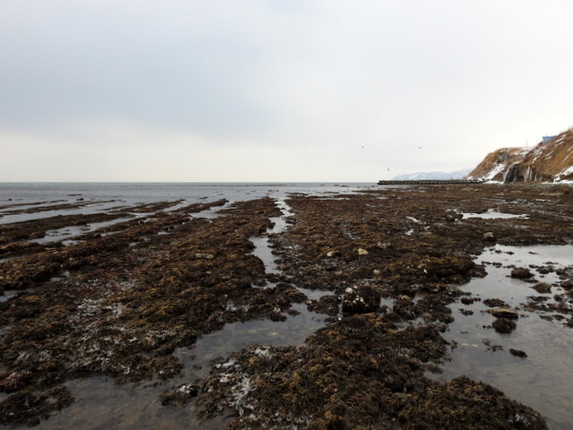 今日は強い高気圧の押し下げにより潮位が下がった(石狩新港でマイナス30cmくらい)おかげで岩礁がかなり露出。